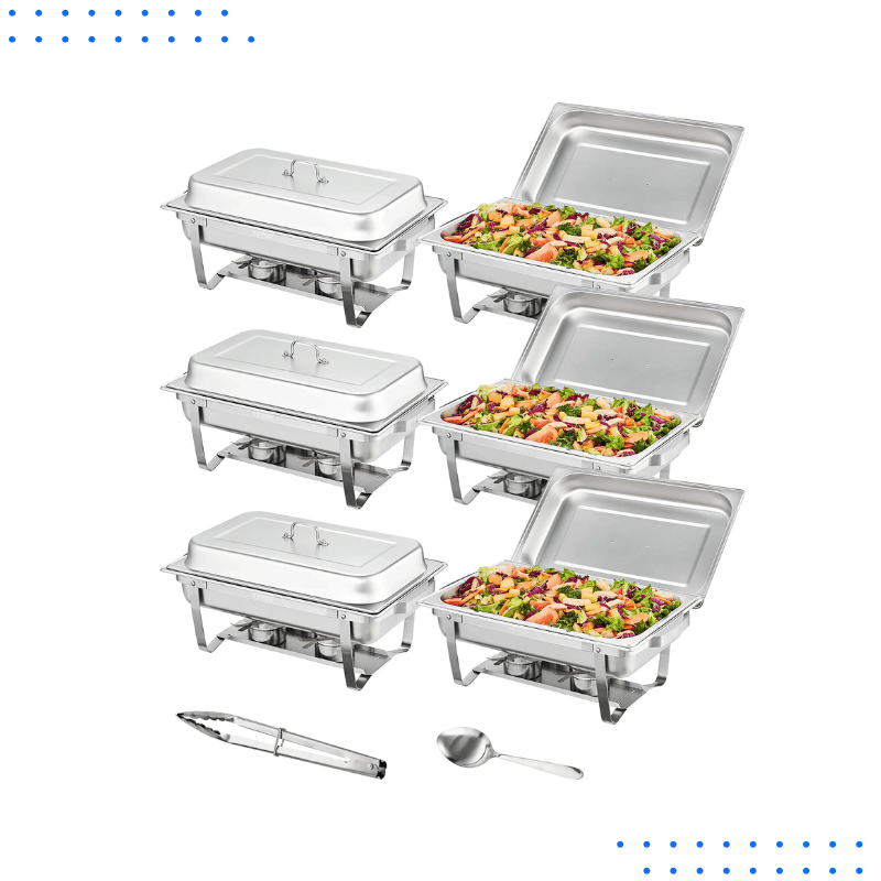 8QT Stainless Steel Buffet Chafing Dish Set – 6 Pack
